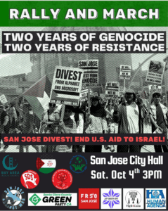 Join us as we take to the streets to demand an end to the genocide, an end to U.S. aid to Israel, and for San Jose to divest from Israel!